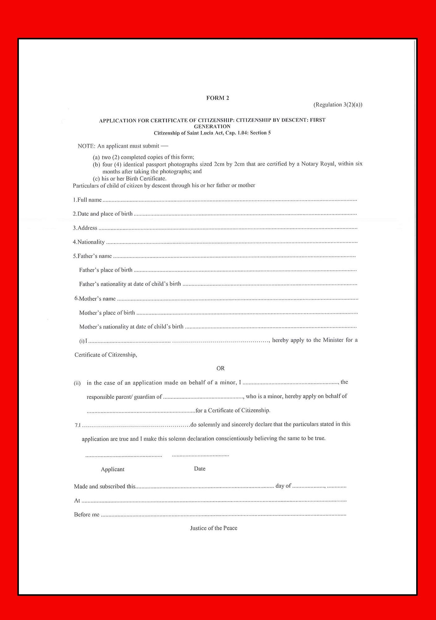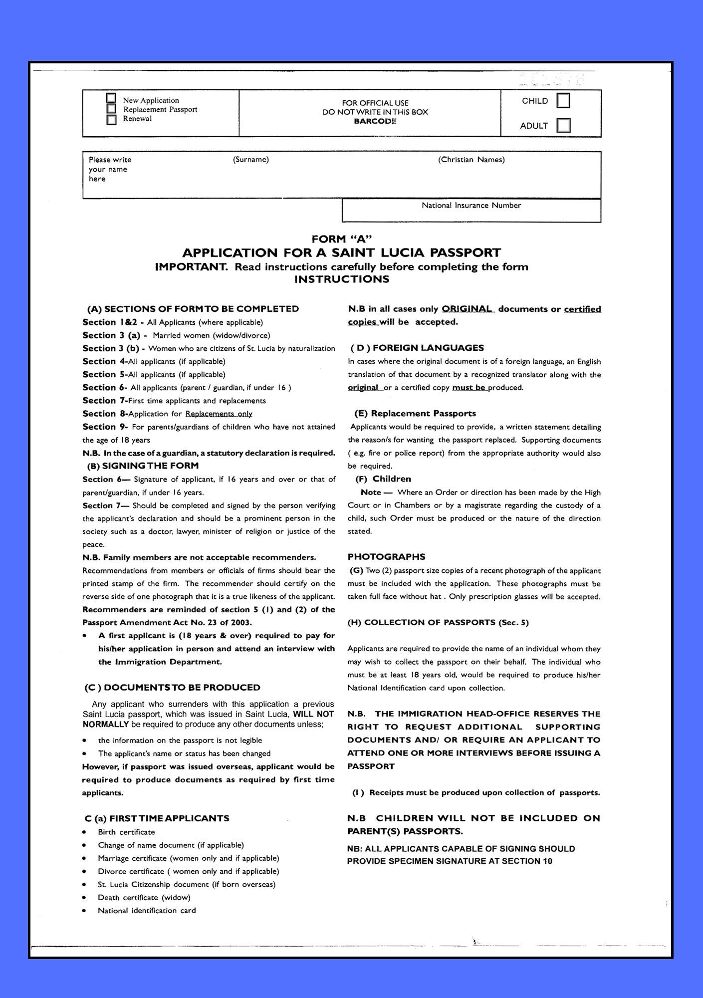 - Emergency Temporary Travel Documents (issued at the discretion of the Consulate, Allows for single entry into St Lucia)