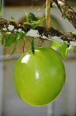Calabash Tree – Crescentia (calabash tree, huingo, krabasi, or kalebas) is a genus of six species[1] of flowering plants in the family Bignoniaceae, native to southern North America, the Caribbean, CentralCALABASH-TREE America and northern South America. The species are small trees growing to 10 m (35 ft) tall, and producing large spherical fruits, with a thin, hard shell and soft pulp,[2] up to 25 cm (10 in) in diameter.